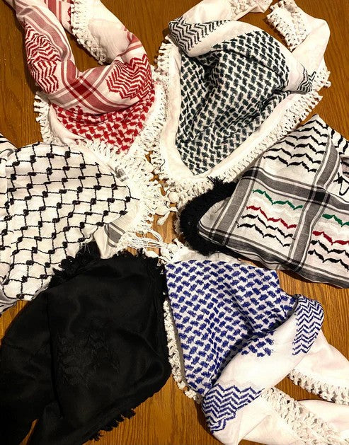 Palestine Flag Scarf, Keffiyeh Arafat Kuffyieh Hatta kofyah design, Student Graduation Scarf, Tie kofyah Scarves, Jerusalem Arab Writing